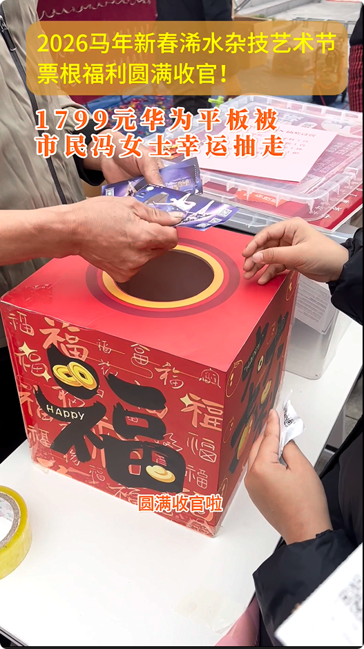 浠水杂技艺术节票根福利圆满收官,1799元华为平板被抽走!